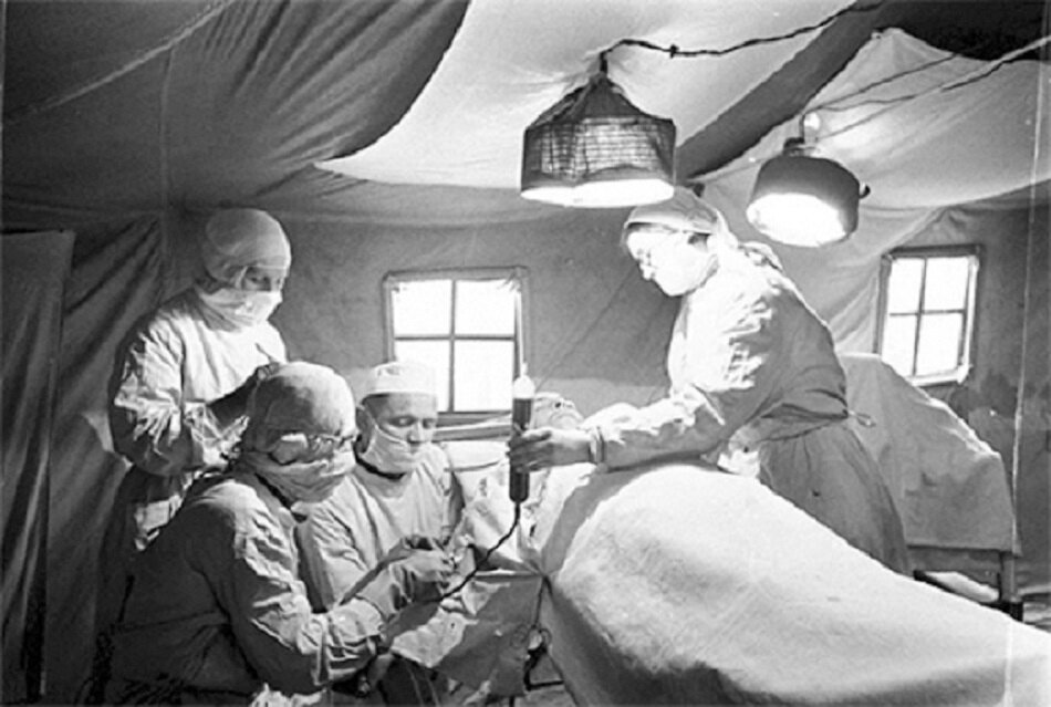 4. На полевые подвижные госпитали первой линии возлагалась роль медсанбатов, их хирургическая деятельность была насыщена вмешательствами при полостных ранениях и тяжелых ранениях конечностей.