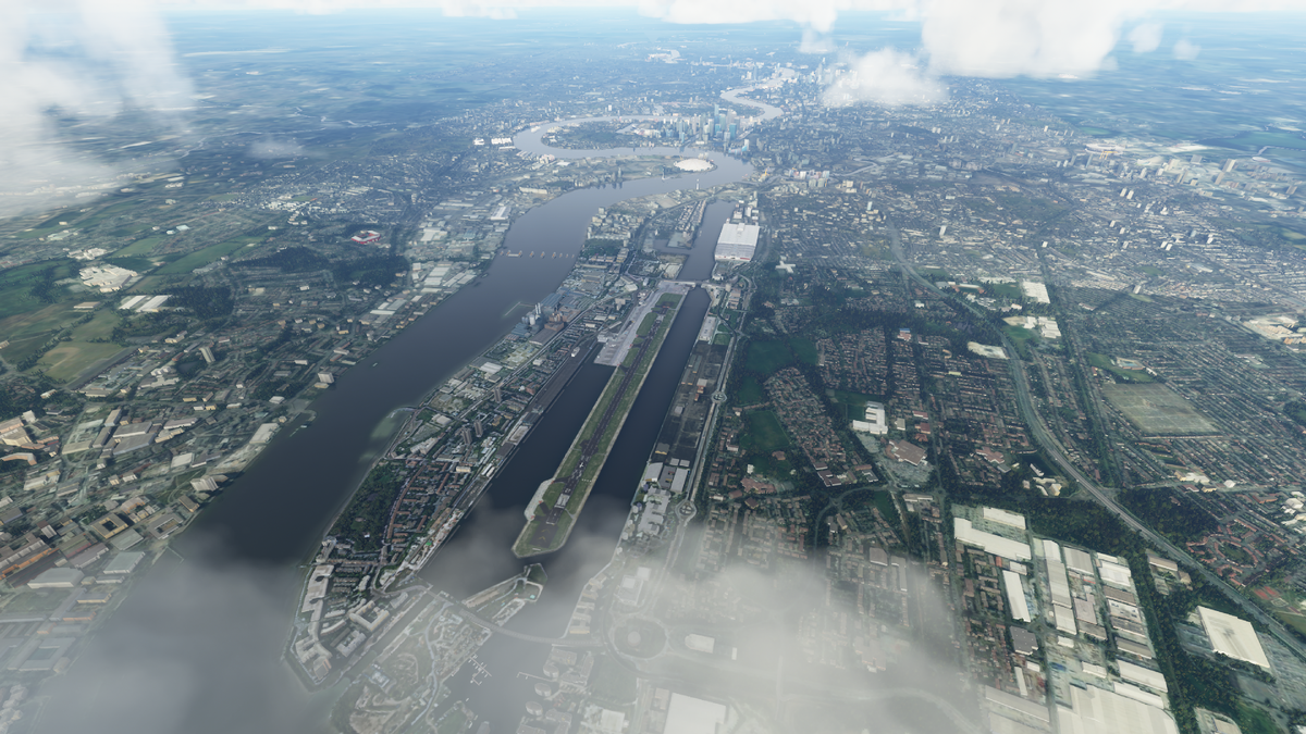 Аэропорт Лондон – Сити в Microsoft flight simulator 2020 представлен в дефолтной (сгенерированной ИИ) версии.