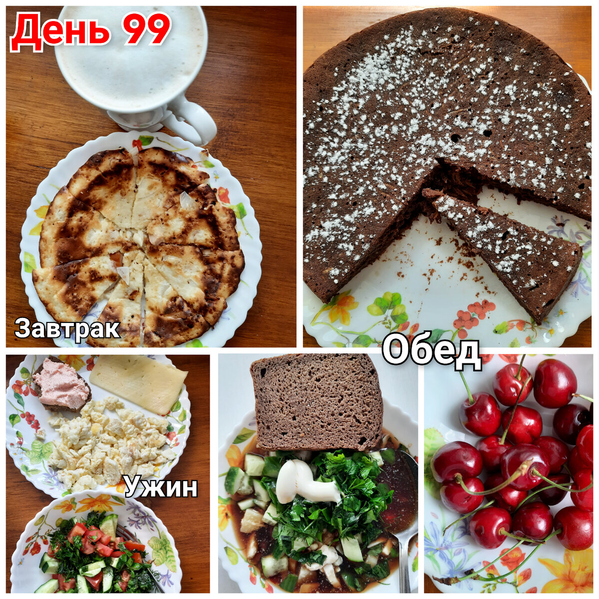 #Ужин – #омлет-скрэмбл из 2 яиц и столовой ложки сливок, во время приготовления перемешиваю лопаточкой постоянно, чтобы омлет был не цельным, а из кусочков. Пластик сыра. Кусочек Дарницкого хлеба с намазкой мелкой икры с майонезом (не знаю как называется эта штука, в карусели прикреплю фото). Салат из огурца, помидора и зелени, заправлен оливковым маслом. И немного черешни.