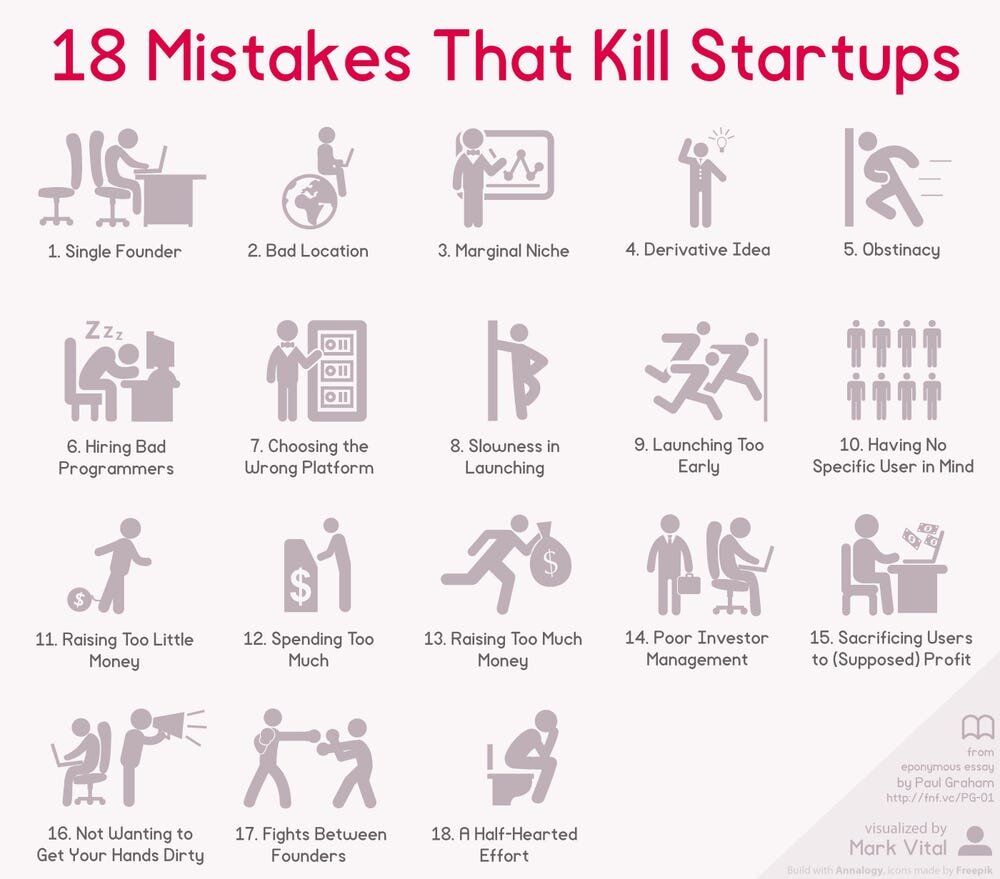 - Raising Too Much Money – raising too much will likely make you feel like a huge success even before you made anything useful. At the end of the day it’s users, not investors, you want to impress the most.