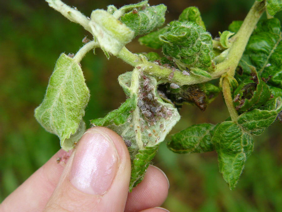 Каждый дачник и сельский человек знаком с этой проблемой, когда всему урожаю угрожает злосчастная тля. Он может погубить все дерево, оставив вас без яблок или груш. Когда мы заметили на одной яблоне тлю, сразу же обратились к своим опытным знакомым, такая напасть и у них случилась в прошлом году. Оказывается, тля появляется там, где почва и грунт не удобрены, поэтому первым делом мы решили подкормить яблоню по совету знакомых удобрением и обрезали кончики веточек, где было очень много тлей. Главный проказник, кто разводит тлей по огороду и саду - это муравьи, они питаются их соком и чтобы было у них больше пропитанья, содействуют тому, чтобы их было больше. Так уж устроена природа. Еще действенный способ для молодых яблонь - протереть их стволы зубчиком чеснока или зеленого лука, чтобы муравьи не стали подниматься вверх по стволу и соответственно не разносили тлю. Более такие экологичные способы - напар из полыни, отвары из чистотела, белила обычные - хорошо бы их в самом начал