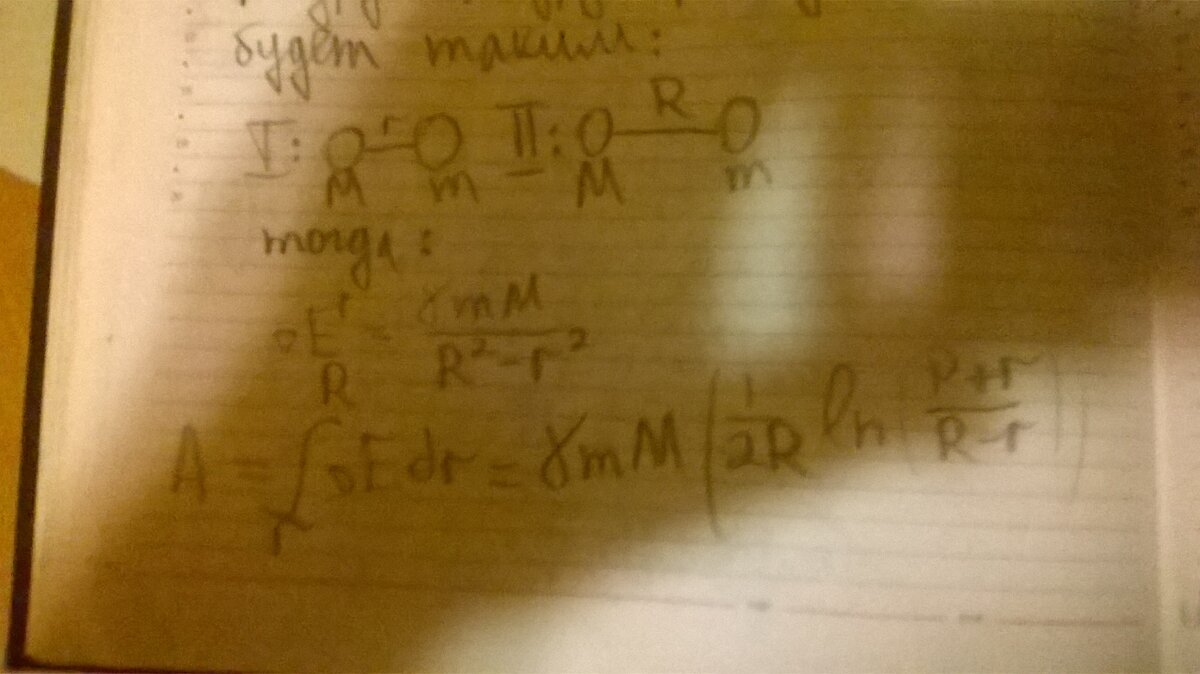 Небольшое отступление: Ведь все мы знаем о понятии эфир , многие даже пишут на эту тематику статьи , помните ли вы про то, если вы ученый, то вы должны привыкнуть к странностям и непознанному , должны ли вы быть открыты новому взгляду на вещи? Разумеется должны. В этой статье я поделюсь своим взглядом на вещи. Разумеется, они могут быть неверными. Итак... Предположим , что у нас есть положение во времени в котором мы точно можем определить координату радиус вектора между двумя телами , когда пространство ещё не расширялось (r- расстояние) и допустим мы знаем расстояние R в данный момент времени, тогда : Как видно градиент энергии был проинтегрирован и вот что мы имеем: Кинетическая энергия помноженная на натуральный логарифм. Почему расстояния вычитаются и почему функция идёт от dr ? Так как в нашем исчислении время не важно, а мы знаем что событие R -это расстояние между двумя объектами в расширенном пространстве , то нам нужно вычесть расстояния, чтобы получить силу в действительнос