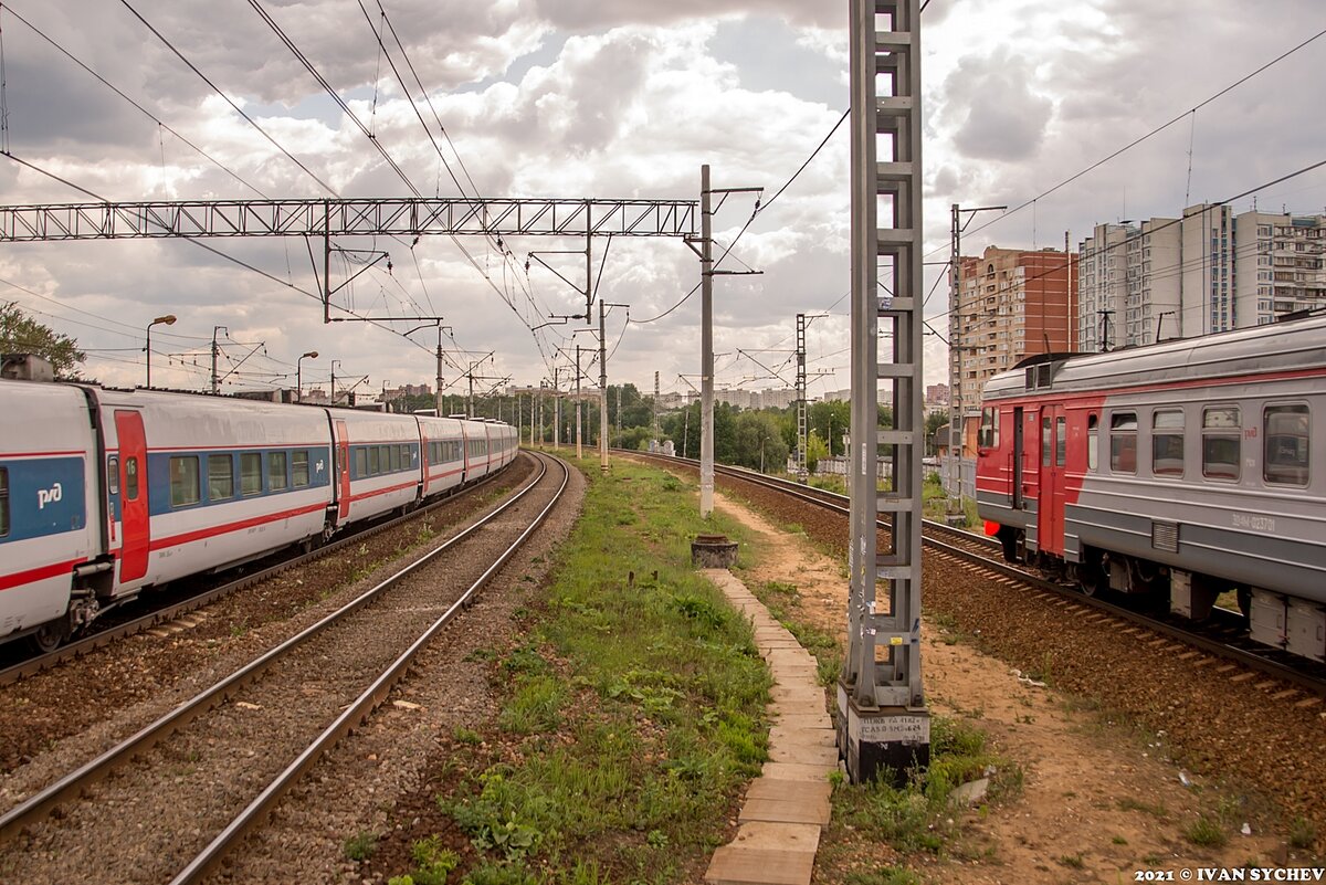 Соскучились по железнодорожным фотографиям с необычного ракурса? Да еще и из одного из самых "баянистых" мест, наиболее часто встречающихся в "Записках от Ивана"? Ну так вот, сегодня в обзоре вновь остановочный пункт Кучино Горьковского направления Московской железной дороги. Но не с самого стандартного ракурса: чаще я фотографирую либо с западного конца платформы, что ближе к Москве, потому что там мало людей и они не очень мешают. Сегодня же фотографии с восточного конца перрона - здесь железнодорожные пути уходят в кривую к станции Железнодорожная и можно попытаться сделать какие-то не самые тривиальные снимки. 1. Но для начала я проспал скоростной поезд "Стриж" с электровозом ЭП20-004 (фотоаппарат надо включать иногда, а не просто нажимать не глядя на кнопки). В итоге получился такой своеобразный одновременный старт двух поездов: слева скоростной "Стриж", справа - обычный пригородный #демиховский_монстр ЭД4М-0237. 2. Полноценная фотография поезда "Стриж", так, чтобы в кадр попал ве