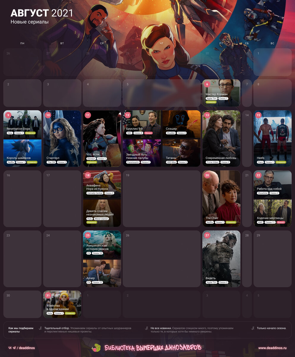 Чем примечательно: ответвление основной вселенной Marvel, которое в анимационной форме фантазирует на тему альтернативных историй знакомых героев. Бруклин 9-9 — 12 августа (N