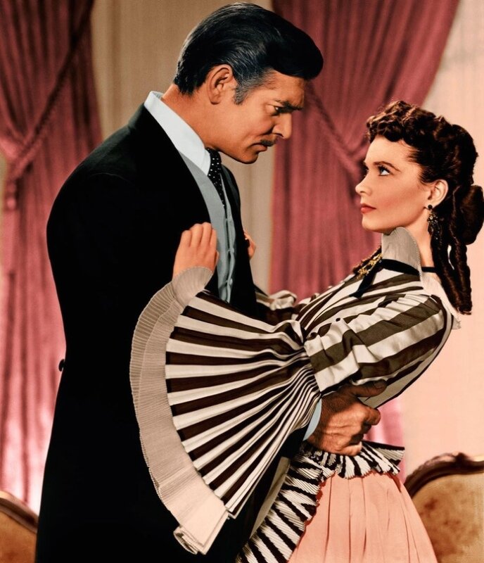 Но самыми запоминающимися нарядами, конечно же, стали всевозможные платья и шляпки главной героини! Их придумал американский художник Уолтер Планкетт - талантливый мастер, чьи работы нашли отклик в сердцах многих поклонников Скарлетт О'Хара!