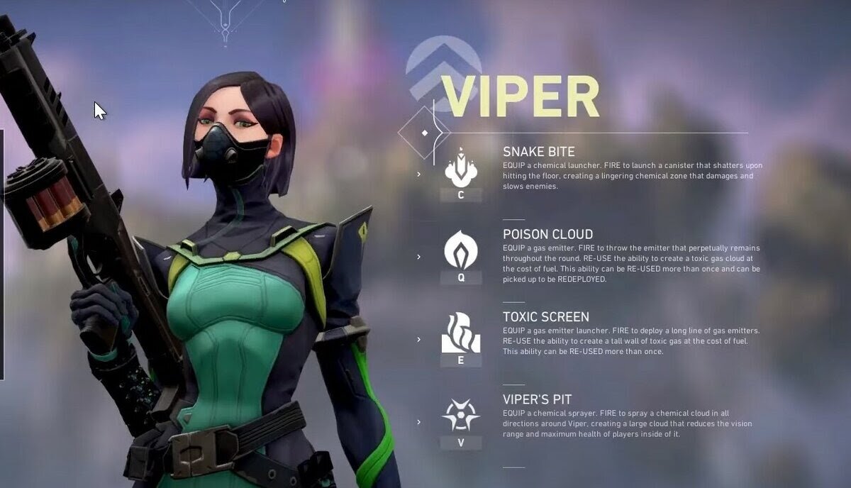 В этой статье мы расскажем, как играть за агента "Viper" в VALORANT. Это сложный, но сильный и полезный персонаж, который может существенно повлиять на исход игры. В этой статье вы узнаете способностях агента, оптимальном времени, месте и ситуациях для их использования. УКУС ЗМЕИ Viper выстреливает снарядом, после которого остается лужа с кислотой. Противники, попавшие в эту лужу, получают урон и замедляются. Эта способность отлично подходит, чтобы проверить углы или скрытые места на карте. ЯДОВИТОЕ ЯБЛОКО Бросая газовой распылитель, вы сможете активировать ядовитое облако. Для этой способности необходимо топливо. Ядовитое яблоко - самая слабая из домовых завес. Она может быть полезна, например, когда вы будете дифузить бомбу. Также ее можно использовать не 1 раз. ТОКСИЧНАЯ ЗАВЕСА Токсичная завеса - это линия распылителей, создающих длинную стену ядовитого дыма. Эта способность может проходить большое расстояние, игнорируя стены и другие препятствия. Как и для ядовитого яблока, для