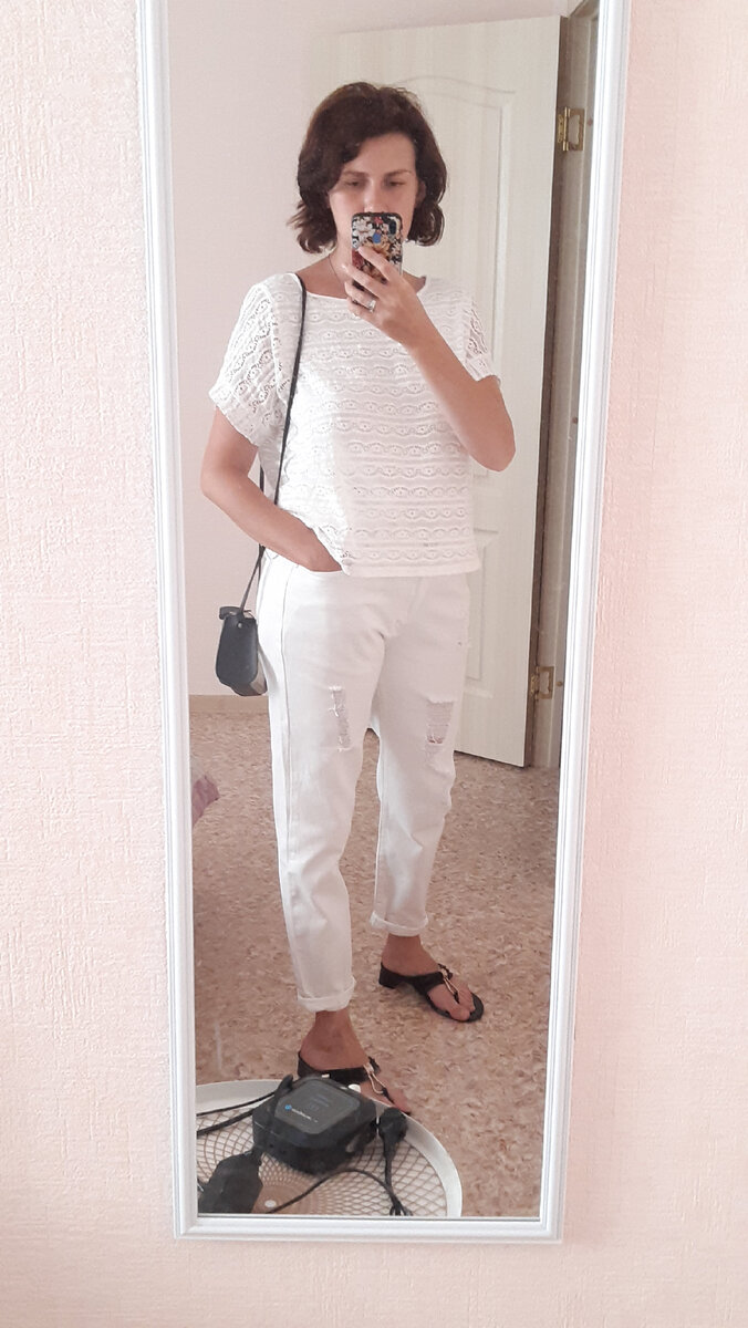 Всем тепла и 🌞. Рада видеть вас у себя в гостях. Я большая любительница секонд-хендов. Данные магазины меня очень вдохновляют и заряжают положительными эмоциями. Это мой антистрес. Хочу с вами посоветоваться... Как вам такой образ? Топ куплен в последний день распродажи- 50 руб. Джинсы уже стали моими любимыми) Не слишком ли много всего и кружево и дырки))))???? В предыдущем обзоре показывала шорты белые хлопковые, к ним подобрала на мой взгляд удачную рубашку. Рубашка из 90-х ждала меня на даче. Жду ваша комментарии и советы по поводу первого образа. Всех уважаю и обнимаю.