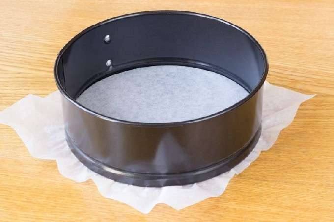 1. Дно разъемной формы для выпечки диаметром 18 см. проложите бумагой для выпечки.