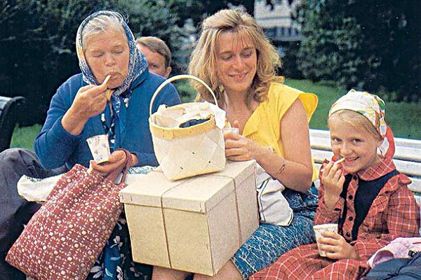 В Советском Союзе образца 60-х годов ассортимент фруктово-ягодного мороженого поражал своим разнообразием – земляничное, клубничное, малиновое, черносмородиновое, виноградное, ежевичное, поленичное, брусничное, черничное, голубичное, клюквенное, дынное, ревеневое, яблочное, айвовое, грушевое, апельсиновое, мандариновое, абрикосовое, персиковое, вишнёвое, сливовое, алычовое, кизиловое, рябиновое… Советское «фруктово-ягодное» (также «плодово-ягодное») – это мороженое, вырабатывавшееся из разных плодов и свекловичного сахара с добавлением стабилизаторов, пищевых кислот и, в некоторых случаях, ароматических веществ. Последние добавлялись для усиления аромата, а их количество зависело от вида эссенции, концентрации и требуемой интенсивности аромата фруктово-ягодного мороженого. Название фруктово-ягодного мороженого зависело от плодов и ягод, использованных при выработке фруктово-ягодной смеси: «фруктово-ягодное клюквенное» «фруктово-ягодное малиновое», «фруктово-ягодное абрикосовое»… В Сре