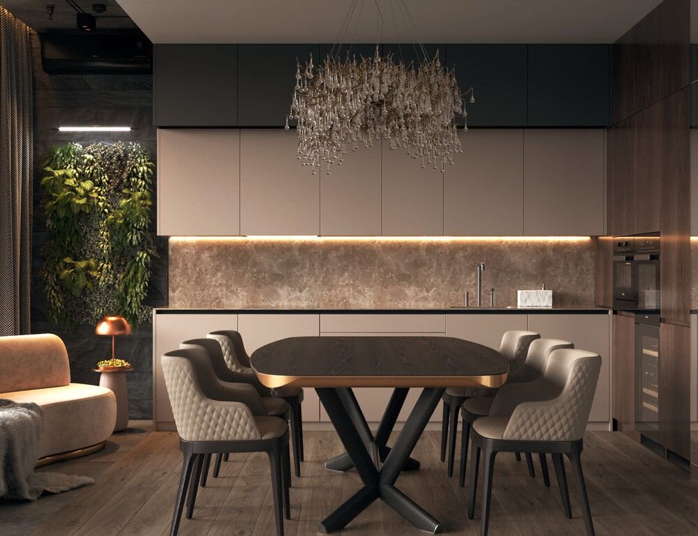 Этот цвет в сознании многих неразрывно связан с современным классическим стилем. Возможно, потому что он идеально подходит для реализации принципов организации пространства в неоклассике, основанных на использовании натуральных материалов (камень, дерево) или тех, что их имитируют. Бежевая кухня в стиле неоклассика предполагает, что кухонный гарнитур может быть полностью бежевым, а столешница быть в том же оттенке, но темнее. Предпочтительны варианты, имитирующие каменную поверхность. Они представлены в каталоге столешниц “Кедр” в широком ассортименте. Также в кухне современной классике бежевой столешница может быть и светлее, под мрамор. Это сделает интерьер более нежным по восприятию. Как оформить обеденную зону Хотите узнать всё о дизайне кухонь? Хитрости оформления интерьера, свежие тренды, подробные руководства, подсказки и множество идей для вдохновения вы найдёте на выбираем-кухню.рф. Узнайте, как собрать собственный идеальный гарнитур и не только! Как выбрать светильник Вполне