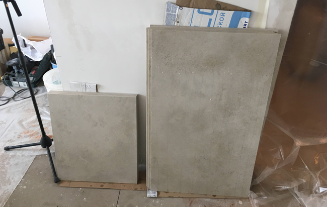 При укладке использовал два вида клея. Первый был уже куплен заказчиками, второй, поскольку первого не хватило, заказал позже. И тот и другой отлично подходили для укладки керамогранита упомянутых размеров, а именно: