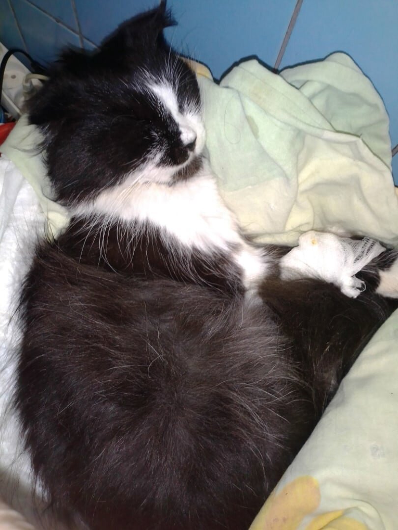 Люди добрые, волонтер Лариса Е., хозяйка мини-кошкиного дома "Богдана" очень извиняется, что ее приют немного исчез с наших страничек. Сейчас время отпусков, а у нас на работе еще и заболел человек... В общем - работаем без выходных. В 6:00 выход из дома у волонтера, а возвращение после работы около 19-30... А потом и не знаешь с чего начинать... А теперь еще у нас беда - заболела Марта. Какой-то вирус очень быстро дает анемию, а сегодня и котята Кнопа и Барсик вызывают тревогу. Марте поставил врач катетер, вчера был введен Ферумлек, колем Цефтриаксон, Циклоферон, но она по-прежнему тяжелейшая. Сегодня она с волонтером рядом на работе. Пить отказывается. Удалось со шприца дать ей 2 перепелиных яйца, но это ничегошеньки не значит... Прокапать на работе ее не удалось - Марта сильно кричит, и из последних сил вырывается. Боится женщина, что она вырвет катетер из вены. После работы поедет хозяйка с ней в вет.клинику, а пока глюкоза и физ.раствор - в холку.