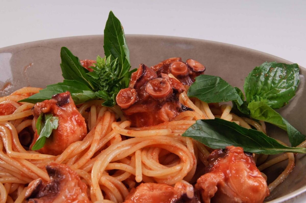 Осьминог любим не только почитателями морепродуктов, но и приверженцами итальянской кухни. Ведь Италия славится пиццей, панакотой, лёгкими салатами и множеством видов паст, из которых немалая часть ассортимента готовится с креветками, кальмарами, рыбой и осьминогами. Ингредиенты Способ приготовления Разложите на порции, посыпьте пармезаном, украсьте несколькими соцветиями базилика и сразу подавайте. Приятного аппетита! ------------- Купить осьминогов доставкой можно в нашем интернет-магазине dikoed.ru. У нас шикарный выбор морепродуктов, а также дикой северной, дальневосточной и якутской рыбы. Дикоед - самая натуральная еда!