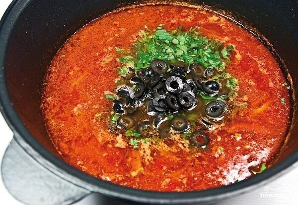 Насыщенная, сытная и очень вкусная солянка в казане в домашних условиях - прекрасная идея для обеда. Чем больше ингредиентов вы будете использовать, тем наваристее она получится. Описание приготовления: Это несложный рецепт приготовления солянки в казане, в который можно использовать абсолютно любые мясные деликатесы и копчености, что окажутся у вас под рукой. Маслины, каперсы, соленые грибочки придадут блюду особую пикантность, без которой не получится настоящая солянка. Ингредиенты: Мякоть говядины — 300 Грамм