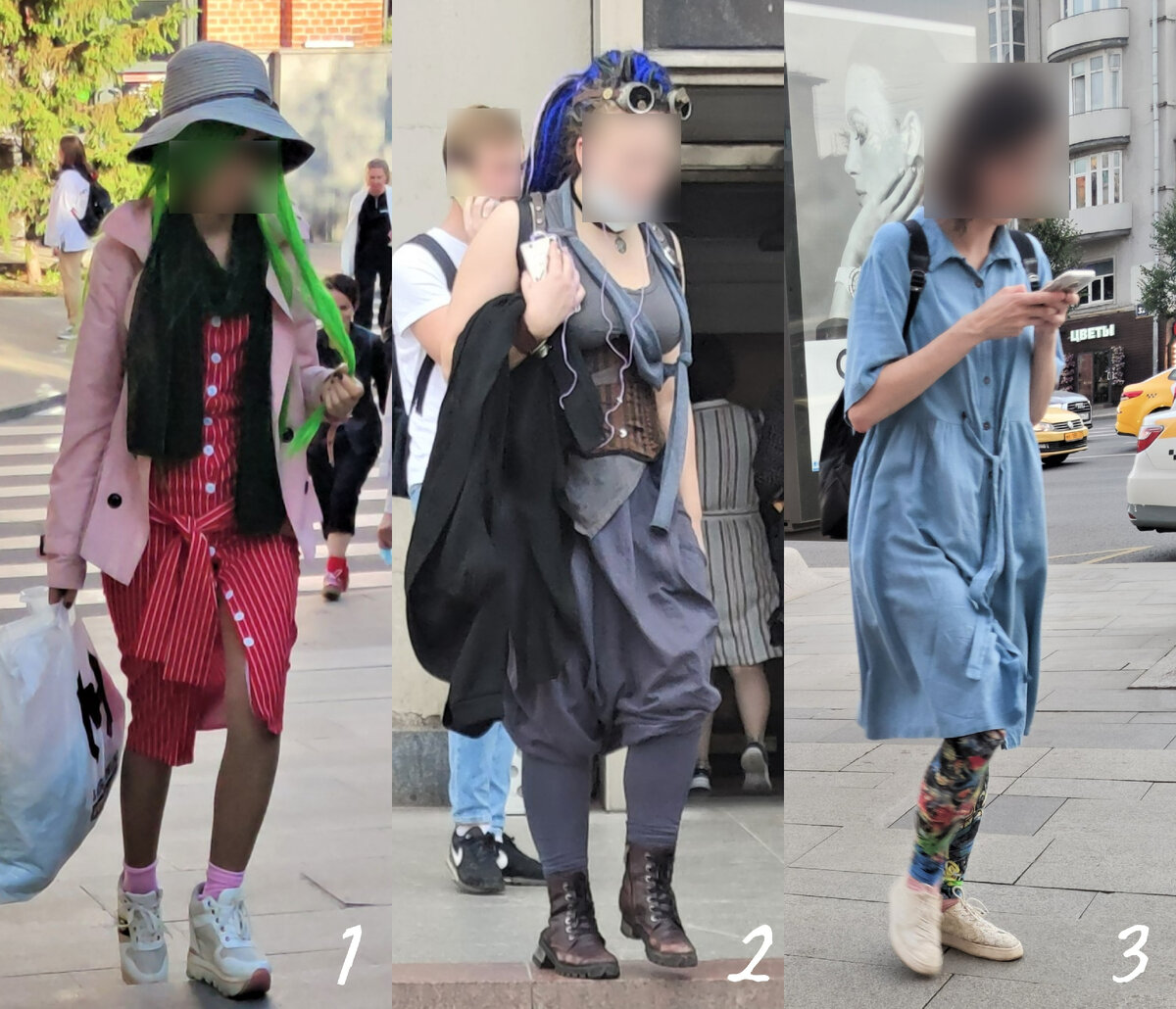 Привет, люди! Примеры на образах реальных людей. Это не значит, что кто-то из владелиц комплектов не молодец и срочно должен приодеться. Статья не несет в себе цели обидеть или задеть кого бы то ни было. Задача - на реальных примерах показать, как лучше выбирать и сочетать одежду, чтобы затем любоваться на свое отражение в зеркале и получать много внимания и комплиментов. Окей? Тогда погнали. 1. Надеть всё и сразу. Чем эпатажнее вид - тем проще шокировать и искать "своих". Способ надевания и количество "интересненького" в образе может быть более понятным большинству (комплекты 2 и 3) и менее (комплект 1). 2. Обтянуться. Такой тип надевания вещей выбирают леди легкой, средней и тяжелой комплекций. Инжирные ледии считают, что обтягон лучше балахона (5); стройные - что демонстрируют свою подтянутую фигуру (6). Остальные - носят, что свалится из шкафа первым с утра. Тем временем, правда где-то по-середине. Все как всегда. 3. Короткое. Хуже всего смотрится на леди с формами, в формате о