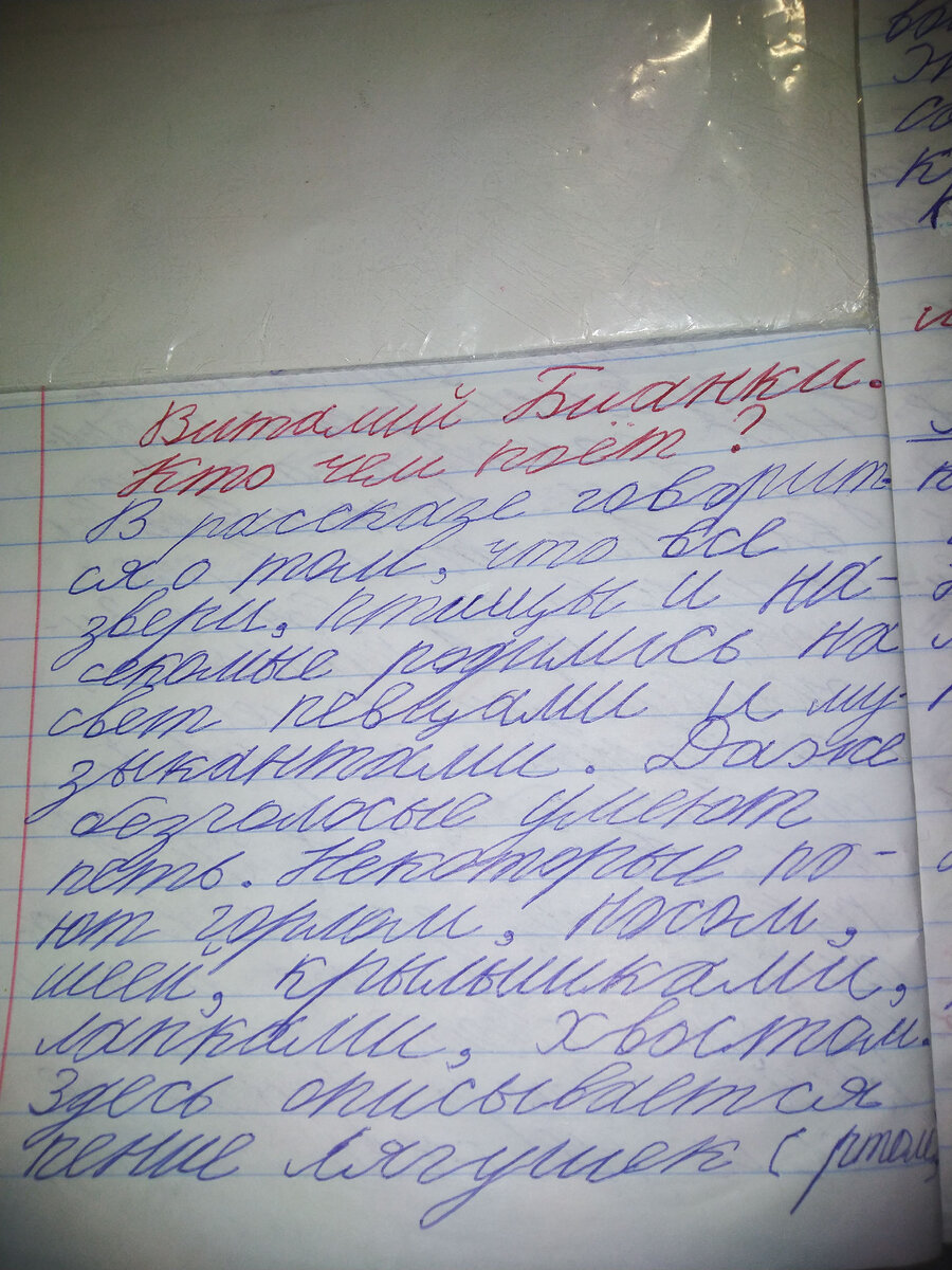 В рассказе говорится о том, что все звери, птицы и насекомые родились на свет певцами и музыкантами. Даже безголосые умеют петь. Некоторые поют горлом, носом, шеей, крылышками, лапками, хвостом. Здесь описывается пение лягушек (ртом), Аиста и Выпи (клювом), Дятла (носом), жука-усача (шеей), саранчи (лапками и крылышками), Бекаса (хвостом).