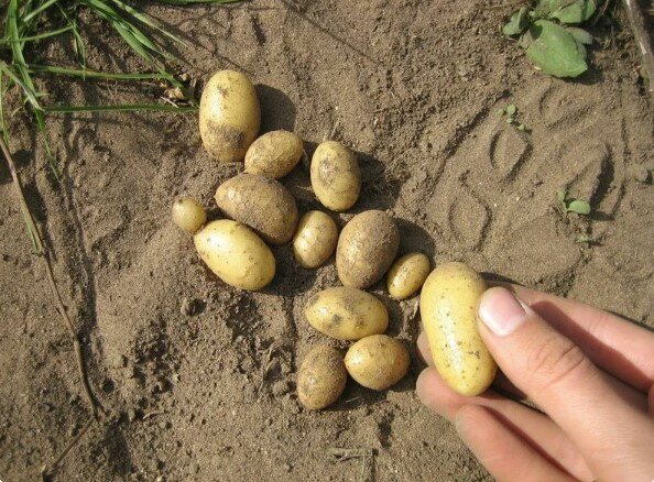 Доброго времени суток, дорогие читатели! Все, кто любит огород, наверняка знают, что всех растений нужно использовать подкормку. Благодаря ей можно собрать богатый урожай. Сегодня я расскажу вам о том, чем нужно подкармливать картофель, чтобы он хорошо вызревал. Для того чтобы проверить картофель, я под капало пару кустов и посмотрела на него. В этом сезоне клубни невероятно мелкие. Виной тому жаркая погода и дефицит влаги. Поэтому чтобы спасти урожай, я решила сделать подкормку. Для картофеля обычно применяются такие удобрения как органические, минеральные и комплексные. Лучше всего добавлять подкормки в грунт при осенний или весенний перекопки. Органические или минеральные. Удобряют из расчёта, примерно 15 г селитры на квадратный метр почвы. 15 г суперфосфата, 20 грамм калия и стакан золы. Пожеланию можно применять и комплексные добавки. Они идут из расчёта по 50 г на квадратный метр. Какие удобрения разбрасывают на грунт, а потом просто перемешивают. После того как картофель зацвел,