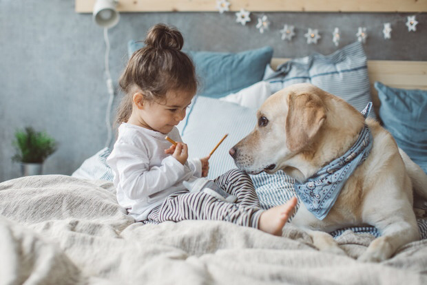 Итак, ребенок начал сам передвигаться. Важно последить за поведением собаки: как реагирует на движение ребенка в свою сторону, на взмахи руками и бросание игрушек (они часто летят во все стороны), на звуки/крики (дети эмоциональны). Если вы заметили, что собаку настораживает, когда ребенок к ней приближается, она не хочет с ним тесно контактировать, научите ее спокойно вставать и уходить к себе в клеточку. Т.е. не командой убирать собаку, а сделать это поведением по умолчанию. Когда ребенок движется к собаке, привлеките ее внимание и бросьте кусочек в сторону клетки. Клик, когда встала. На следующем этапе, когда собака уже сама будет вставать, клик когда зашла в клетку и кусочек. Если вы видите, что собака перевозбуждается от общения с ребенком, начинает прыгать, бегать, лаять, такие игры лучше прекращать. Во-первых неосторожные движения на возбуждении могут напугать/уронить малыша, к тому же многие собаки используют в таких коммуникациях зубы (что является видотипичным поведени