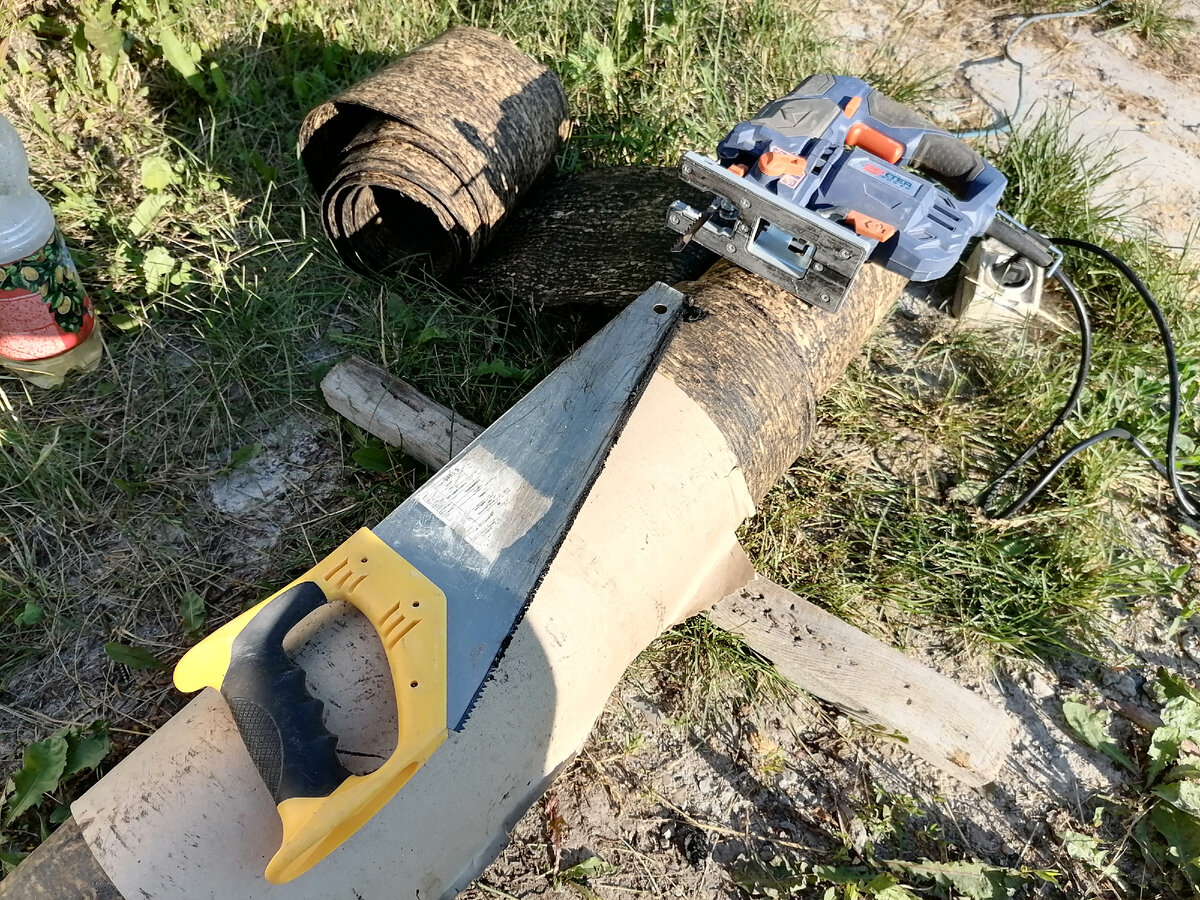 Под мауэрлат нужна гидроизоляция. Еще со строительства бани завалялся рулон рубероида (заливал сваи ТИСЭ в рубашку из рубероида, обмотанного скотчем). Решил использовать его. Как проще отрезать полосу шириной 20 см? Начал это делать старой ножовкой. Но зубья быстро забились гудроном и далее 5-7 мотков я не продвинулся. Тем более, полосу приходилось постоянно разматывать. Пришла мысль попробовать разрезать рулон электролобзиком. И, как говорят: о, чудо! Материал не только отлично резался крупными зубьями полотна, но и налипал на инструмент (не плавился). Образовывались опилки из гудрона. Это было первое удивление. Разрезал начатую полосу, но уже больше не разматывал ее. Просто проворачивал рулон против движения электролобзика. Получилось, что полотно распилило его по окружности. А финальный результат выглядит так: Ровный рез. Края не оплавились по краю. И полотно осталось чистым, что удивило меня второй раз. Процесс можно посмотреть в ролике: Более простого, быстрого и чистого способа