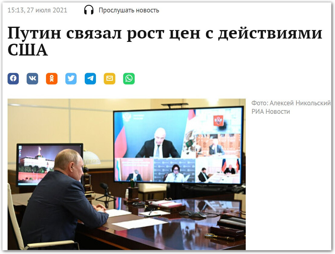 Год как исправили Конституцию, а Америка все ещё причина наших проблем: Путин объяснил рост цен в России действиями США