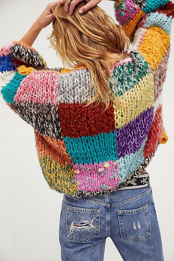 Пэчворк - это лоскутная мозаика. Раньше так называли только сшитые между собой разноцветные лоскутки ткани, но сейчас стиль пэчворк перекочевал и в жизнь вязальщиц. Причём этот яркий приём вязания стал очень популярным среди юных модниц (загляните в тик-ток!), которые только-только взяли в руки спицы или крючок, отыскали в бабушкиных сундуках разноцветные клубочки и за пару недель связали свой первый стильный кардиганчик 👕 И это здорово! Потому что вязание - это отличное занятие, его уже вовсе нельзя считать скучным делом бабушек на лавочках. Вяжет молодёжь, вяжут парни и взрослые мужчины! Такую простую кофточку свяжет даже начинающая мастерица. Акцент на рукав! Свяжите его немудрёным узором и уже другой вид. Бохо-стиль тоже любит элементы пэчворка. Сдержанные натуральные оттенки добавляют благородства. Платье из льна - отличная основа для летней вязаной накидки. Остались клубочки от прошлых проектов? Не беда, подавайте их сюда ))) И к тому же можно потренироваться вязать разные узор