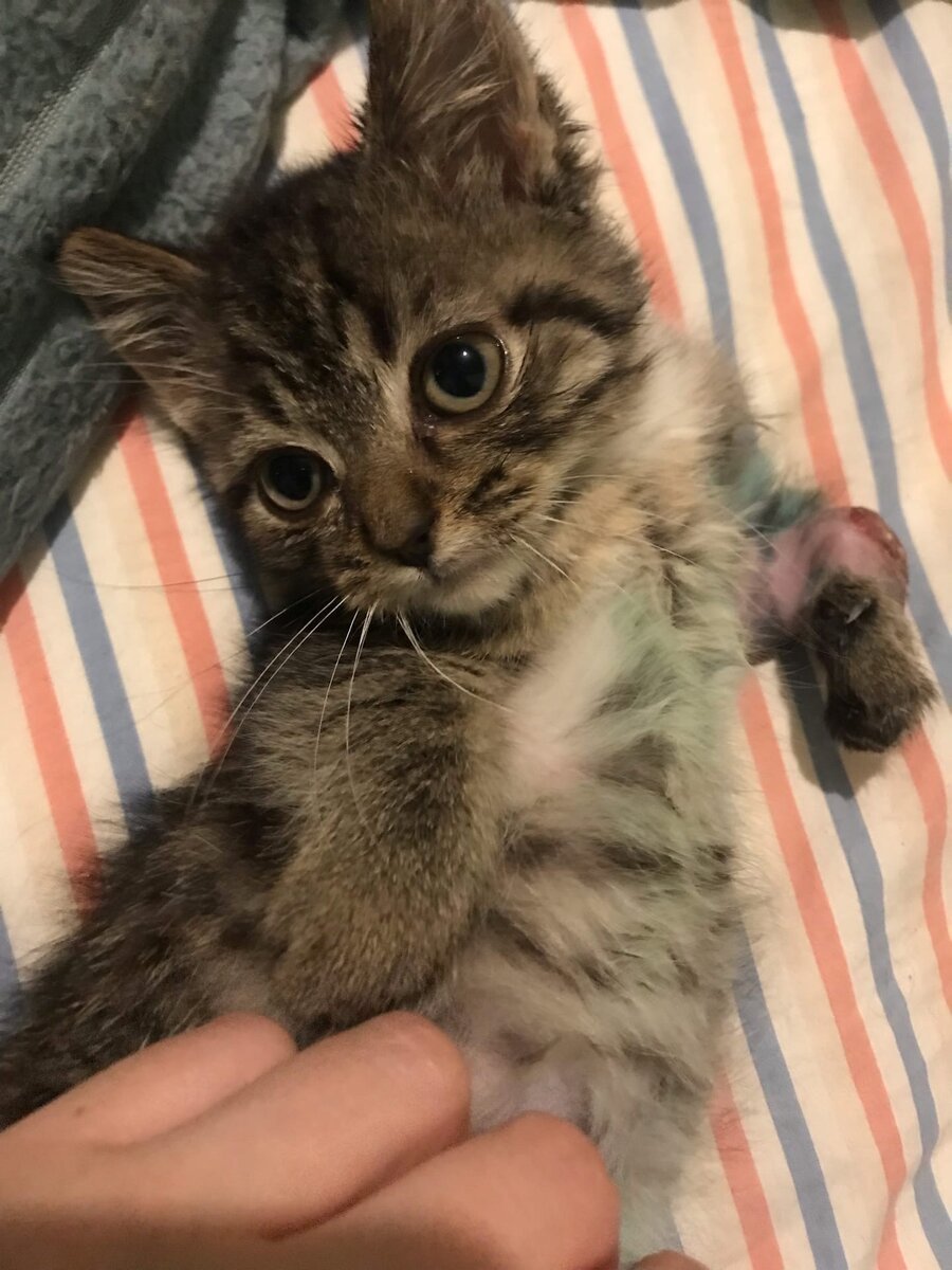 У нас новый крошечный подопечный… Так случилось, что его жизнь началась с подвалом и улицы… Достоверно не знаем, но скорее всего он родился у уличной кошки, потом что-то с ним случилось и он заболел. Два котенка оказались почему-то под кустиками, один был на вид здоров, а у второго была проблема с лапкой. Скорее всего собаки… а моет и люди постарались. Догадки строить е будем, не знаем… Стало ясно, что котенка надо срочно спасать. Сразу же поехали в клинику, мы очень надеялись, что лапку можно будет спасти. Но, к сожалению, разрыв нерва в плечевом сплетении восстановить невозможно. Минус еще в том, что в данном состоянии котенок скорее всего давно… Поэтому, врач посоветовал не мучать малыша лечением, так как лапка не восстановится… К тому же, есть вероятность заражения крови…