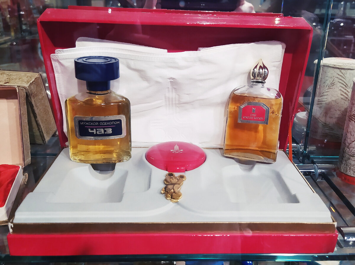 Заинтересовал меня вот такой набор. Если про духи я знаю, то про одеколон "Чаз" никогда не слышала. Полезла в интернет самообразовываться. Оказалось, что это очень популярный некогда американский одеколон, выпускаемый до сих пор. Этот набор выпустили к Олимпиаде-80, скорее всего он должен был символизировать дружбу США и СССР. Но что-то пошло не так, набор выпустили, а американцы Олимпиаду игнорировали.