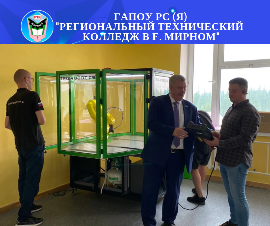 В рамках федерального гранта по созданию современных мастерских в соответствии мероприятиям «Государственная поддержка профессиональных образовательных организаций федерального проекта «Молодые профессионалы» (Повышение конкурентоспособности профессионального образования)» национального проекта «Образование» государственной программы Российской Федерации «Развитие образования» 28 июля 2021 года Мирнинский региональный технический колледж получил оборудование для мастерской по компетенции «Промышленная робототехника» на сумму 19,4 млн. рублей, сообщила первый заместитель директора по внедрению стратегических проектов Клара Бурнашева. Всего поступило пять роботизированных ячеек. Поставщики в настоящее время под руководством международного эксперта «Ворлдскиллс», сертифицированного эксперта «Ворлдскиллс» с постоянным статусом Григория Школьникова проводят пуско-наладочные работы. Отметим, что в МРТК планируется готовить специалистов в области промышленной робототехники, который должен обл