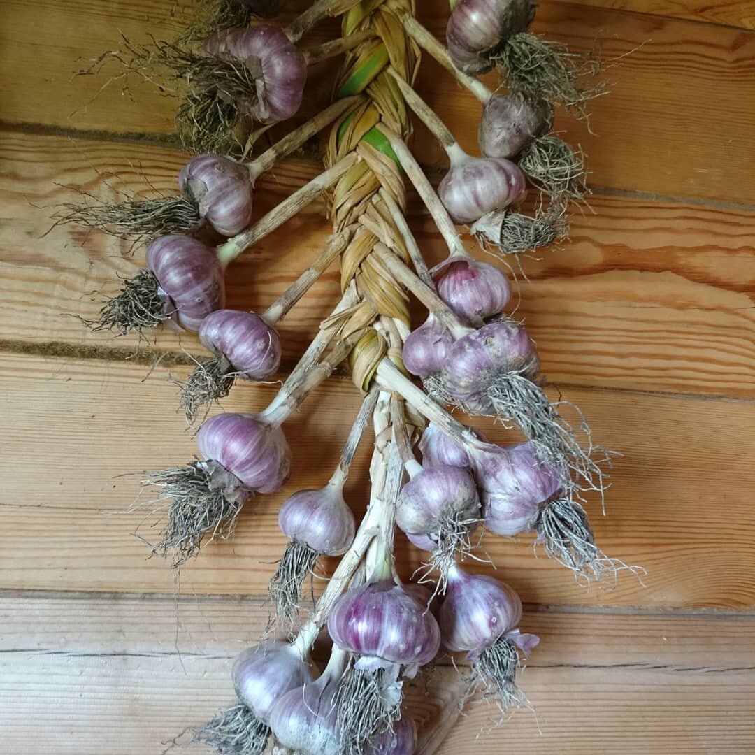 На носу уже сентябрь, пришли первые ночные похолодания и пора задумывать, где и как правильно припасти чеснок на зиму. По советам бабушки я храню чеснок в доме, за печкой в небольших ящиках, для лучшего хранение чеснока посыпаю золой. Но перед тем, как его сложить по ящикам я собираю в пучок по 10-17 штук, а верхушки обрезаю и вешаю в темное и прохладное место. Таким образом он хорошо просушится и не будет чернеть. Правильное хранение это еще пол дела. Наверное многие сталкивались с проблемой: потемнение, желтизна, ароматизация чеснока. С чем это связано? Все просто – это переросший чеснок. Поэтому, если вы хотите сохранить чеснок в зиму, вы должны получить его в конце осени или зимой. И для этого существуют некоторые хитрости. Как только чеснок начинает стрелковаться, сразу же прекращайте с ним активно заниматься, это вызвано тем, что, в конце сентября – октябре, приходит пора плодоносить чесноку. Именно поэтому, давайте купим его уже осенью. Но, если вам не повезло и вы купили че