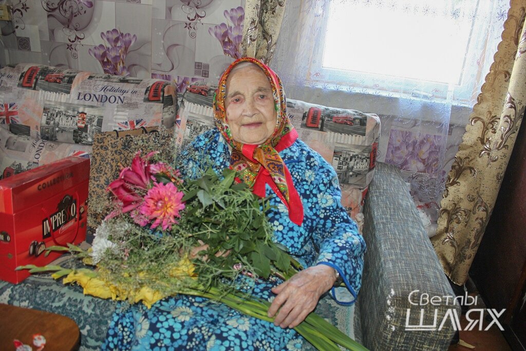 Бывают такие дни рождения, которые становятся праздником и грандиозным событием для всего района. 26 июля выдался именно такой день. Наша землячка Анна Гируть отметила своё 101-летие. Долгожительницу приехали поздравить начальник управления по труду, занятости и социальной защите райисполкома Зоя Крачковская, директор УТЦСОН «Тёплый дом» Марина Николайчик, ответственный секретарь Сморгонского районного совета общественного объединения ветеранов Мария Бровко и председатель Залесского сельисполкома Зенон Гришкевич. Зная, что именинница очень любит цветы, каждый гость привёз ей по огромному букету. Анна Антоновна родилась в населенном пункте Богданово Воложинского района в 1920 году. В 1936 переехала с семьёй в деревню Михайловщина Ошмянского района, где прожила до начала 80-х. В 1945 году у Анны родился сын Леонид, которого женщина растила и воспитывала одна. Сын рано пошел работать в колхоз, а в 1962 году поступил в Харьковское высшее военное авиационное училище. Мать очень гордилась, ч