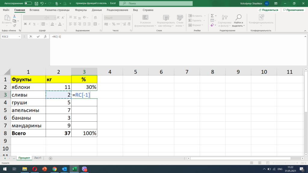 В данной статье рассмотрим, как прописывается формула для подсчета процентов в excel % от числа. Прописывать будем в ручную. Для легкого усвоения , разделим на 6 шагов. Также в качестве примера расчет прикрепляю видео, где аналогично пошагово разбираем формулу процента. 1. Для начало, как и с формулой суммы проставляем знак "=" в ячейку в которой нужно получить результат. Курсором выбираем значение по которому нужно вывести процент: 2. Далее проставляем знак деления "/" и выбираем курсором ячейку, процент от числа которого нужно посчитать и нажимаем enter. 3. После, того как формула для подсчета процентов сработает, в ячейке excel отобразиться дробное число , которое нужно будет преобразовать в проценты. 4. А для этого выбираем курсором ячейку, по которой необходимо изменить формат отображении и нажимаем правую кнопку мыши. Отобразится меню в котором выбираем формат ячеек. Откроется окно в котором нужно поменять формат с общего на процентный , как в моем случае. 5. Также при в