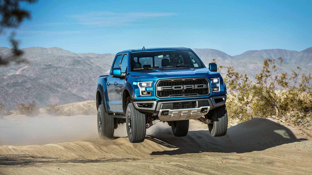 Вдохновением послужил участвующей в гонках "Baja 1000" гоночный пикап "Ford F150 SVT Raptor R", именно на него опирались при разработке гражданской версии болида. Под капот запихнули V8 на 411 лошадиных сил и одарили его первоклассной внедорожной подвеской. Мощные массивные рычаги подвески F150 Raptor дополнялись амортизаторами "Fox Racing" с выносными резервуарами, ход такой подвески не может не впечатлять, 33 сантиметра впереди и 35 сзади. Такая подвеска способна выдержать многое, ее энергоёмкости может позавидовать даже танк. На данный момент уже выпускается второе поколение F150 Raptor с еще более высокими характеристиками. Его внедорожный арсенал оцените сами: клиренс 284 миллиметра, блокировка центрального заднего и переднего дифференциала, при этом Raptor имеет возможность двигаться как на полном приводе так исключительно на заднем, дрифт на большом и мощным пикапе, что может быть проще. При мощности в 450 лошадиных сил и массе в две с половиной тонны используя современные 10 ступенчатый автомат супер-пикап разгоняется до сотни всего за 5 секунд, но настоящим королем он будет именно вне асфальта. Основная его стихия это преодоление бездорожья на максимально возможной скорости, с такой энергоемкой подвеской и с такими огромными ходами дубасить по пересеченной местности не разбирая дороги, вот для чего был создан Ford F150 Raptor.