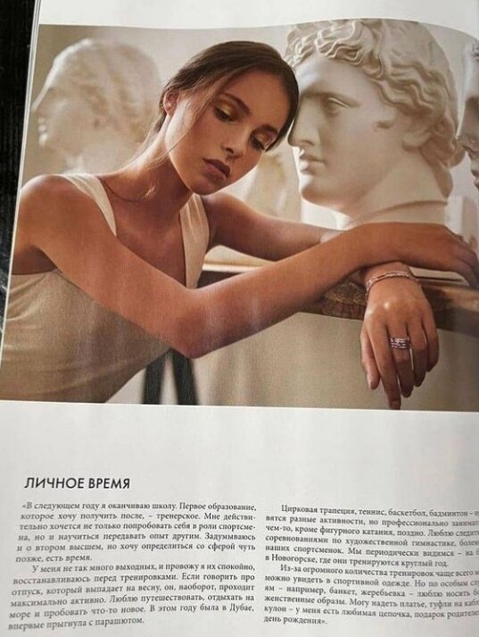 Анна Щербакова является любимой спортсменкой миллионов людей! Она притягивает к себе своей утончённостью, лёгкостью, искренностью. Особенно приятно с ней работать различным фотографам. Недавно появилась новые снимки Анны для журнала «Hello». О новых кадрах сейчас с удовольствием и поговорим. Хочется сразу сказать, что полноценных фотографий на данный момент опубликовано не было, поэтому нам остаётся наблюдать только за теми, которые сфотографировали в журнале сами болельщики. На этом фото прекрасно чувствуется элегантность Анны. Такое обычное белое платье, забранные сзади волосы, но какую эстетику сразу можно наблюдать! А тут Анна в такой космическом образе. Блестяще-серый комбинезон, кольца, эффектный макияж! Мы можем видеть нашу фигуристку в абсолютно разных стилях, при чём в каждом она выглядит потрясающе. Тут на Анне лёгкий комбинезон с необыкновенными вырезами. Образ подчеркнули золотыми аксессуарами. Как здорово на этом фото раздуваются её волосы! Ну а тут просто что-то невероятн