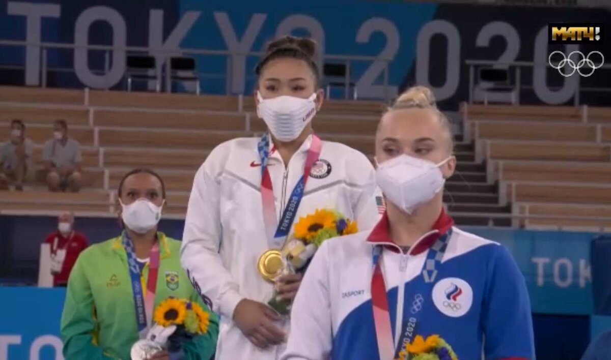 Ангелину Мельникову поздравляем с бронзой в личном многоборье, но ощущение, что наших девочек несколько "придержали". Заключительная таблица выглядела так: На четвертом месте шестнадцатилетняя Владислава Уразова. Все решалось в вольных упражнениях. После того, как Джейд Кери (США) упала на бревне, она по сути выбыла из списка претендентов на пьедестал. После двух снарядов лидировали бразильянка Ребека Андраде и американка Суниса Ли. На брусьях ситуация изменилась. Владислава Уразова вышла на вторую позицию. Наши девочки были спокойны, уверенны, на снарядах не допускали грубых ошибок. И наконец - вольные упражнения. И Владислава, и Ангелина выполняют вольные, можно сказать, безупречно. Уразова получает 13,4, а Мельникова 13, 866. При этом бразильянка делает два больших заступа, выходит за пределы площадки. И неожиданно получает 13,766 и резко обходит и Владиславу, и, естественно, Ангелину. И на бревне были моменты, когда Ребека Андраде сильно качалась, явно ее программа не была сильне