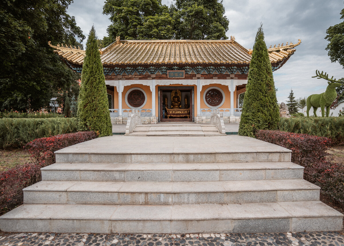 На центральных воротах изображен Ван Лин-Гуань – в китайской мифологии сказано, что это страж дворца, который должен отгонять злых духов. «Охраняют» ворота два мифических льва – защитники, стражи богатства и благополучия. Сами ворота уже наводят восторг, так как близко похожи на те, что стоят в Китае.