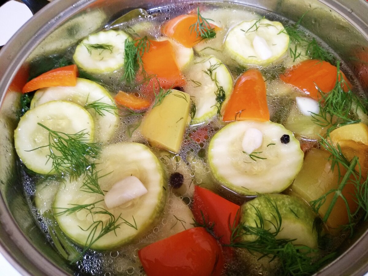 Всем доброго дня! Сегодня приготовим маринованные кабачки с болгарским перцем быстрым способом, закуска по такому рецепту получается просто объедение. Приготовим маринад.