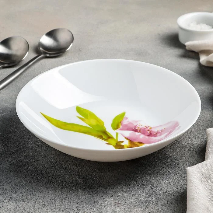 Тарелка суповая 20 см Water Color, 800 мл Тарелка серии Water Color добавит сервировке стола нотки летнего настроения. Предмет из ударопрочного стекла украшен нежным рисунком в тёплых тонах. Особенности:
