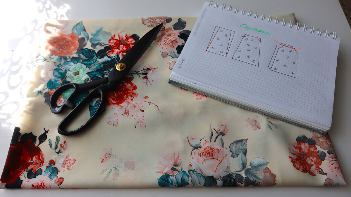 Всем привет! Если вы совсем не имеете опыта в шитье, но очень хочется научиться, то надо начинать с самых простых вещей. Лучше всего брать ткань, которая легка в обработке, не обсыпается, не скользит, - типа хлопка. Каждый шов надо проглаживать во время шитья. Не стоит браться за сложные вещи, иначе есть риск все испортить и разочароваться в этом деле. Всему этому нас учили в школе на уроках труда. Первое, что мы шили, был ситцевый фартук, второе ночная рубашка. Сегодня сшила летний сарафан по самой простой выкройке, на основе прямоугольника. Этот незаменимая вещь в летнем гардеробе для отдыха в жару. Хорошо, когда одежда свободная и не прилегает к телу. Чтобы рассчитать ширину прямоугольника, надо померить обхват груди и бедер. К самой большей мерке прибавить от 10 до 20 сантиметров, можно и больше. всё зависит от того насколько широким будет сарафан. Расход ткани в зависимости от этих размеров. Кому-то хватит одной длины, а кому-то - двух. Себе я шила по косой. Можно сделать его полн