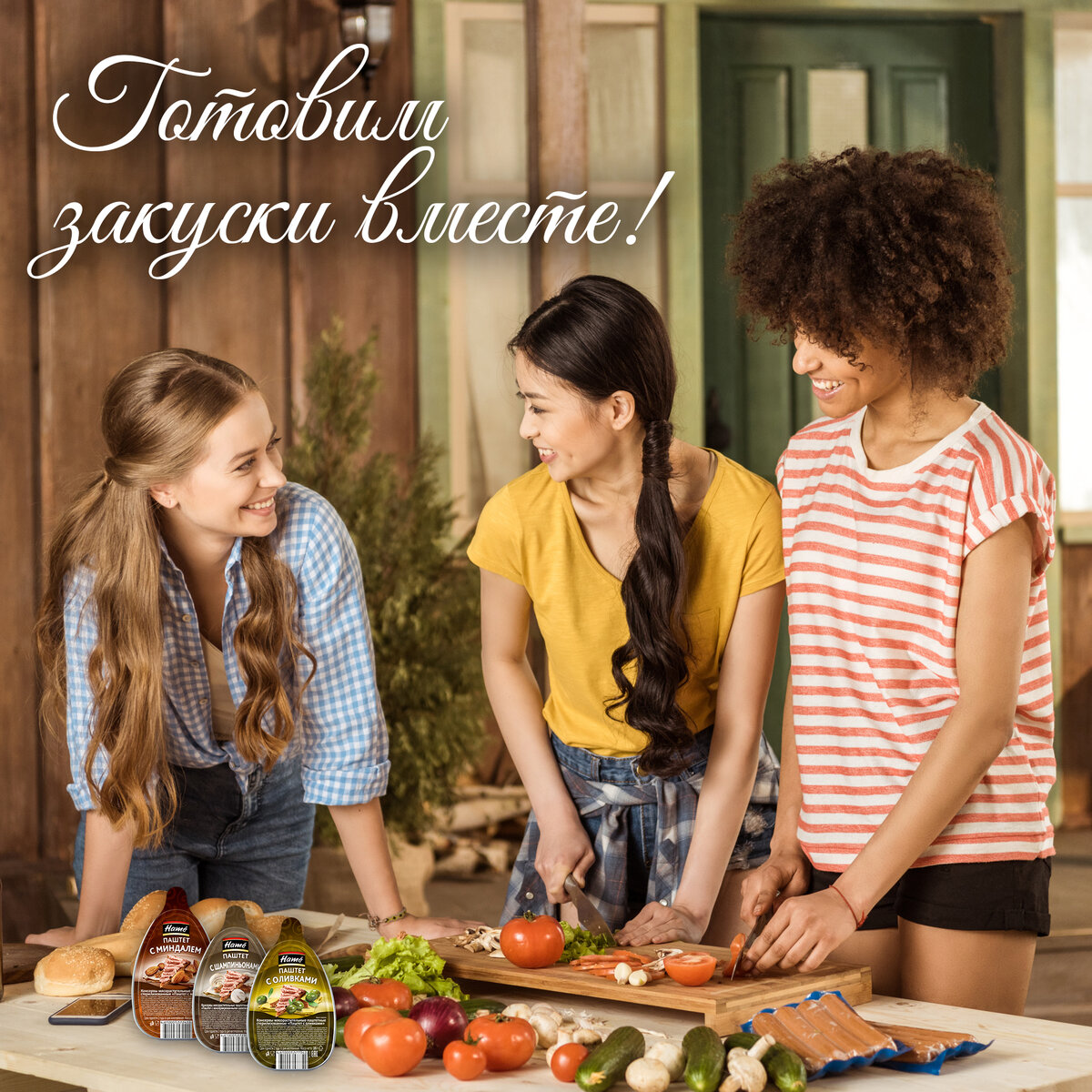 Пригласите сегодня друзей на ужин и вовлеките их в процесс приготовления любимых закусок! Дружба станет только крепче И даже несмотря на то, что друзья такие разные, в нашем дружном семействе новых мясных паштетов Hamé найдется свой любимый вкус для каждого: с маслинами, с оливками, с маринованными огурчиками, с шампиньонами, с клюквой, с миндалем