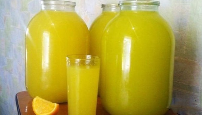 - Добавьте к процеженному апельсиновому соку 6 литров воды, 1 кг сахара и 30 г лимонной кислоты. Смешайте все вместе и перелейте в большую емкость, где даем апельсиновому соку постоять около 1 часа, а затем можно подавать.