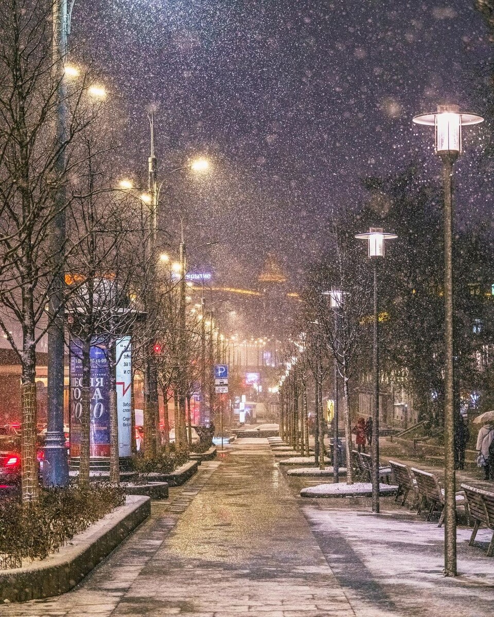 Вчера Город накрыл первый настоящий снегопад! Такой, с хлопушками сантиметровыми, налипающими на воротник. Хрустом из-под ботинок. Паром изо рта. Пробками километровыми. Начался аккурат под конец рабочего дня, так что вышедшие ещё тёмным утром под свинцовым депрессивным небом горожане обнаружили себя в зимней сказке. Ну и я, вместо того, что бы выпить по второй кружке чая с давним другом, сорвался со стула, едва не забыв оплатить счёт, со словами, - «Мне пора, началось!». Для кого-то снег стал, сюрпризом, но не для меня. Тёплые носки, флиска под пуховик, трекинговые перчатки, термос с шиповником, да светосильный телевик. С таким набором смело можно ринуться в бой за красотой, документировать этот чудесный вечер. Да и проверю, есть ли погодозащищённость у камеры по факту, а не на бумаге.