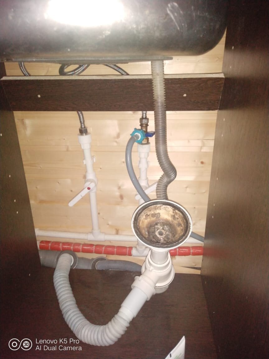 Вчера после работы был интересный план на вечер)). Хотел заняться утеплением труб отопление в доме. А тут сюрприз, решил помыть посуду. А тут целый блокбастер мою посуду нечего не предвещало беды. В раковине притянуло пробку, ну ладно моем дальше вода до половины пошла выключил. Потянул на себя пробку, через пару секунд мои ноги накрыло потоком теплой, мыльно-жирной воды. Открываю тумбочку там такой развал)!