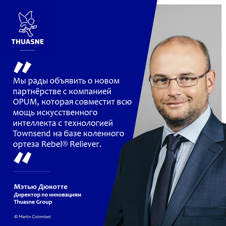 Новое партнерство между Тюан и OPUM привносит искусственный интеллект в лечение остеоартрита. Thuasne, крупный игрок в области медицинских устройств в Европе, и компания OPUM из США, занимающаяся медицинским оборудованием и большими данными, подписали партнерство по цифровому решению для неинвазивного немедикаментозного лечения остеоартрита (ОА). Целью партнерства является оцифровка опорно-двигательного аппарата с использованием объективных данных и определение наилучших методов лечения ОА для улучшения результатов лечения пациентов и снижения общих затрат. Первый продукт будет интегрировать цифровую платформу по уходу за коленями с поддержкой искусственного интеллекта® OPUM с коленным бандажом Rebel® Reliever OA от Тюан. Вместе эти технологии обеспечат персонализированную физическую нагрузку и поведенческую терапию непосредственно для пациента, позволяя осуществлять дистанционный мониторинг масштабе необходимом клиницистам для управления большим количеством пациентов с более высоким к