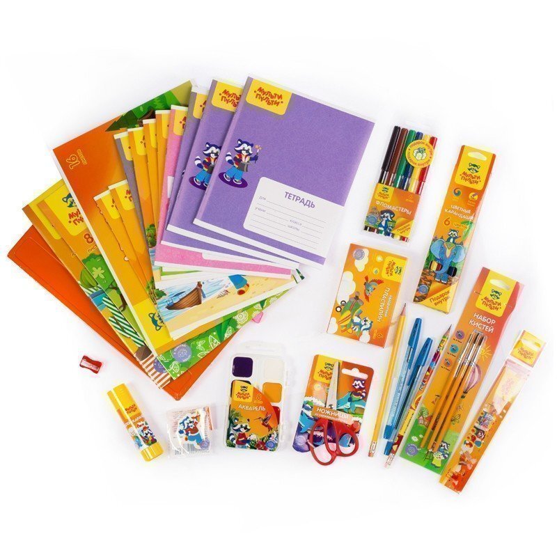 Примерный набор канцелярских и других принадлежностей для первоклассников.
