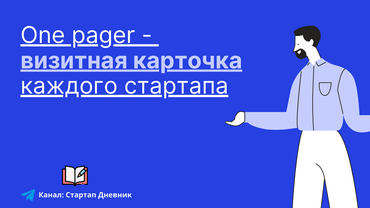 Что такое one pager? Это – PDF документ из одной страницы, в котором представлена вся информация о стартапе. По сути - one pager – это питч в сжатой форме. Зачем нужен one pager? Стартап встречает на своем пути кучу людей – инвесторов, журналистов, другие стартапы, возможных клиентов, партнёров. И после первого общения им всем нужна какая-то информация о стратапе, чтобы они могли обсудить его со своими коллегами. Или просто не забыть. Питч для этого – слишком большой формат. Многостраничная презентация – никто её читать не будет. А вот на one pager можно взглянуть и за 30 секунд понять, что же делает стартап: Вот здесь можно посмотреть неплохие темплейты. Главное не стоит забывать, one pager должен отвечать на те же вопросы, что и питч! Не стоит его забивать водой. Всё должно быть по делу. У вас есть 30 секунд, чтобы убедить читателя, что вы стоите его времени. --- Подписывайся на мой телеграм-канал! ⁉️ В этом канале хочу ответить на те вопросы, которые меня преследовали, когда я толь