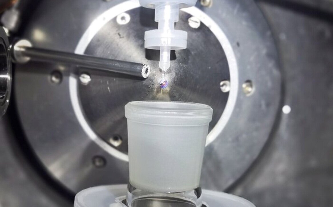 Эксперименты проводились в вакуумной камере, где при комнатной температуре из тонкого сопла капал натриево-калиевый сплав. Рядом была расположена трубка, через которую на жидкий металл направлялся водяной пар при давлении 10 мбар. Примерно за 10 секунд пока капля росла, пар на ней конденсировался, создавая водяную пленку, толщиной всего в несколько молекул.