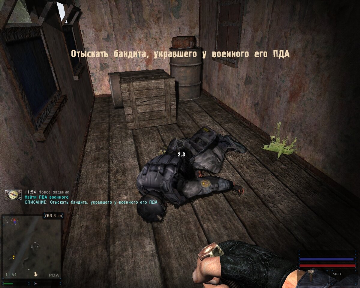 После лечения Толика заглядываем в вагончик, крошим ящики и берем квест у военного. В ящике может оказаться еще бутылка водки (одну уже точно сэкономили) В деревне если обшарить все, то еще несколько штук. все прячем в ящике Сидоровича 2 берем с собой. Идём к Петрухе, просим помощи в штурме, освобождаем шустрого и опять ищем водку в ящиках. В кузове тоже часто попадается что - то ценное. Далее берем квест у Шустрого И у Петрухи. Медуза бывает в этом ящике напротив деревни А это Костя, один из самых мощных НПС в игре. Он как раз даст квест на ТОЗ но говорить с ним сейчас конечно же не стоит) Далее Сидорович даёт задание встретится с провожатым, вот он, кормит зверей в тоннеле под мостом. Активируется задание пробраться на свалку за насыпь. Отдаём бутылку Кузнецову, он разрешает час пройти беспрепятственно, Там будет Лис на фабрике, соглашаемся помочь, отстреливаем монстров. Уже есть обрез и кое какой автомат, на блокпосте 6-8 бандитов. Нужно завалить, вернутся назад и уложится в