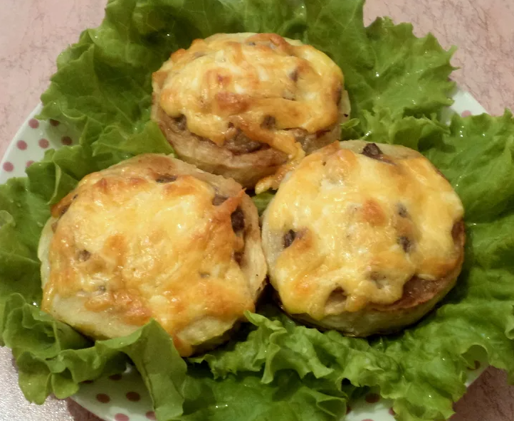 Предварительно их маринуем, за счёт этого грибочки получаются очень вкусными и нежными а начинка очень простая.