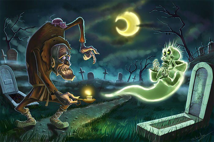 Гуляем днем с дедом по кладбищу. Сидит на плече, переодически взлетает, облетает территорию кладбища и возвращась сообщает, что все спокойно. Пытаюсь навести справки о девченке. Дед отмалчивается. Говорит, что пытается найти ее по своим мертвым каналам. Неожиданно натыкаемся на съемочную группу у одной из могил. Человек с черной повязкой на глазах протягивает руки в сторону могилы и говорит, что видит что то большое и белое. Рыжий мужчина перебивал и требует уточнений. Вокруг начинают собираться призраки и заключать пари, облажается мужик или нет. Я киваю деду, видишь это. - Да, с Петровичем как то смотрели передачу. Клоуны там одни. С одним пытался выйти на связь, так тот так испугался, что теперь лечится в психушке. - Дед, может попробуем силы? - А что, - дед расправил крылья, - давно я за пределы кладбища не выходил. Надо мир посмотреть, себя показать. Пошли, надерем зад, этому рыжему клоуну.