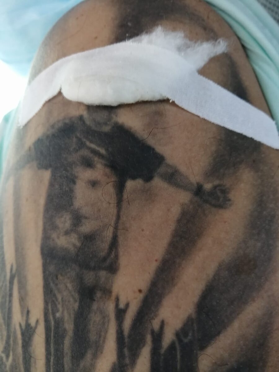 Вакцинация - дело добровольное! Или добровольно-принудительное. Я работаю в культурном учреждении, поэтому вакцинироваться до начала сезона был обязан. Я не спорил. И не буду спорить нужна ли вакцина или можно обойтись без неё. Более того, я уверен, что она не повредит организму. Особенно после того, как он, организм, в изрядных количествах принимал вредные продукты, якобы полезные, но тоже вредные продукты и вообще не вредный, а очень полезный алкоголь! В общем, я вакцинировался! Укололи прямо в морду!!! Прямо в моду чуваку, который у меня на предплечье изображён. Было больно. Укол болел, рука болела, температура сутки небольшая была. Но, пишу я не о самой вакцинации. Пока ждал своей очереди "уколоться и забыться", осматривал плакаты на стенах поликлиники и наткнулся на выставку юных художников, посвящённую врачам! Ребятишки - молодцы! У них большое будущее в искусстве! Любовался их картинами. Естественно, каждая картина несла в себе замысел художника. Её необходимо было разгадать.